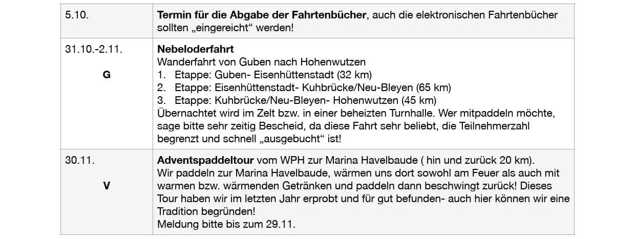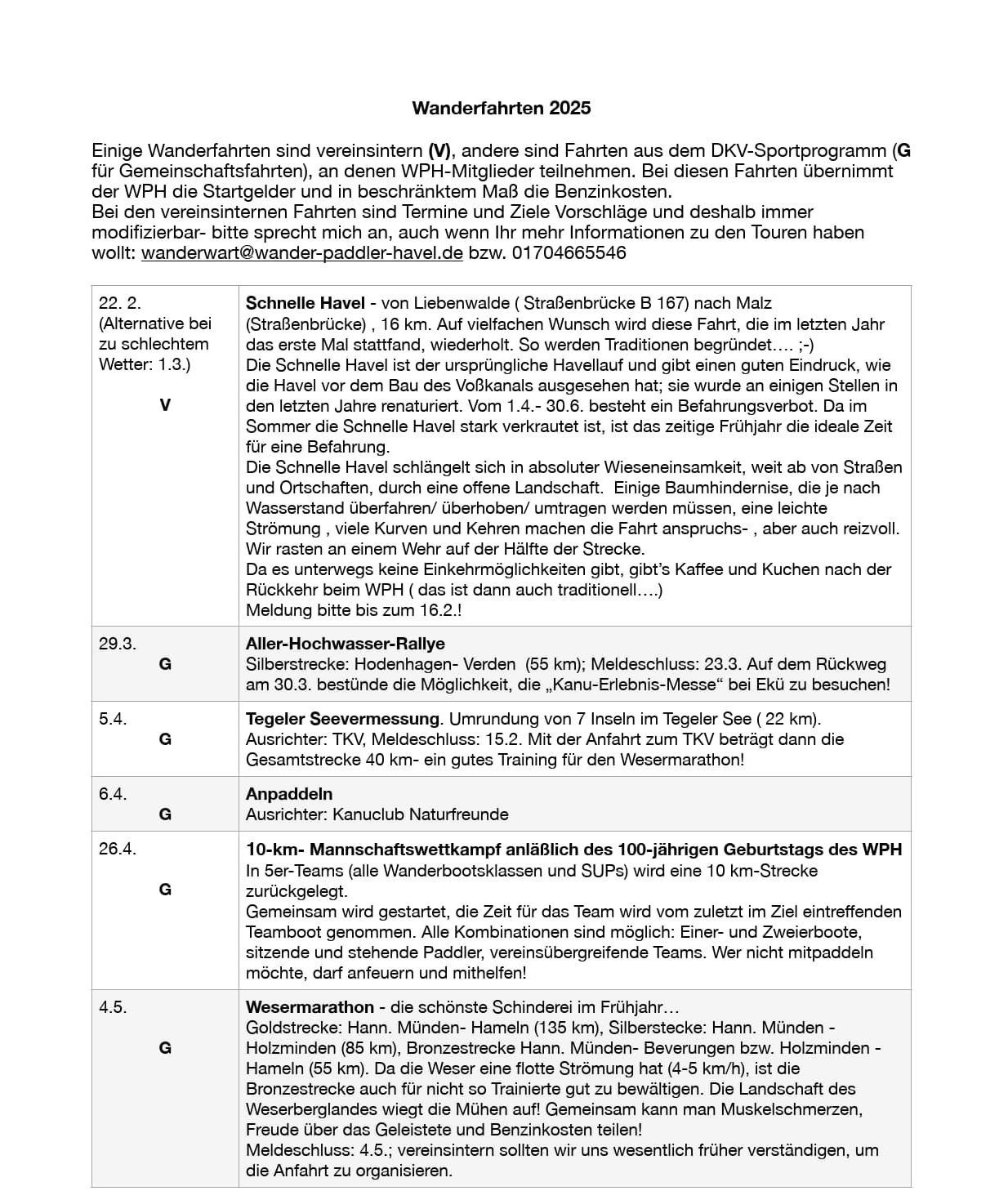 Wir freuen uns im Jahr 2025 wieder Wanderfahrten anzubieten. Ob in einem Kajak oder auf einem SUP einfach mal die Seele baumeln lassen und die wunderschöne Umgebung von Berlin und Brandenburg zu erkunden. Bei Interesse bitten wir euch dieses rechtzeitig bei unserm Wanderwart Jens Kühne unter wanderwart@wander-paddler-havel.de anzumelden, da wir für die Organisation und Reservierungen einen gewissen Vorlauf benötigen. Unten findet Ihr die geplanten Touren für dieses Jahr. Wir hoffen auf reges Interesse und viele zu sammelnde Kilometer für den Verein :)